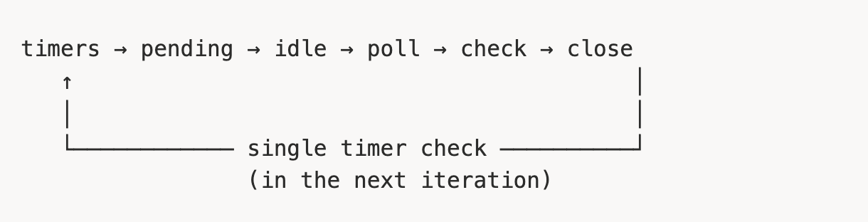 The phases remain the same (timers in the timers phase, <inline-code>setImmediate<inline-code> in the check phase). What changed is when timers are checked for expiration.